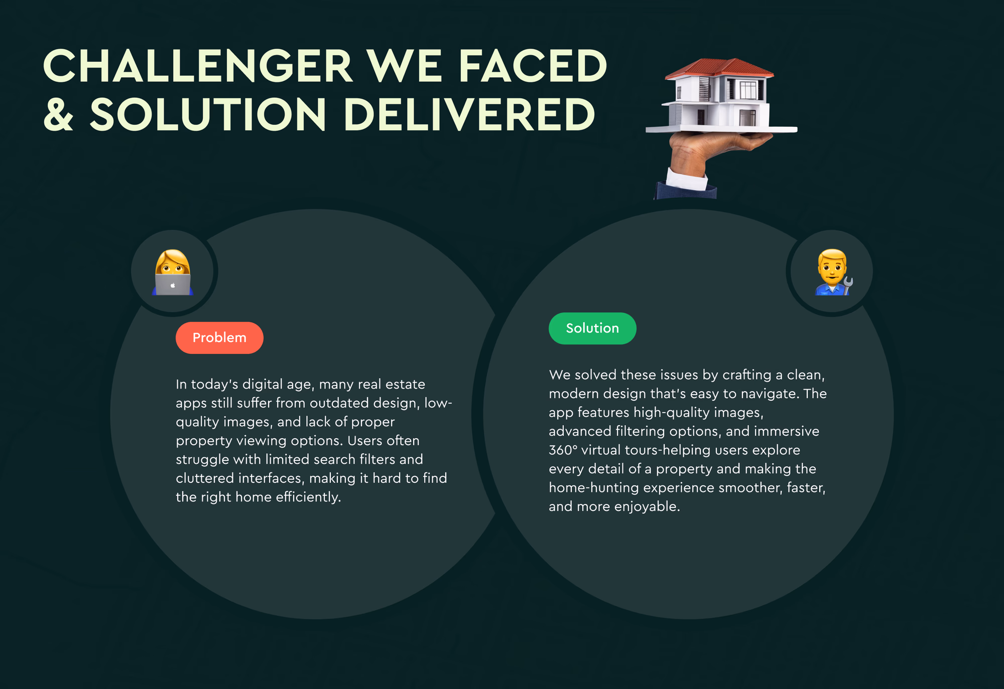 We designed this real estate mobile app to make finding a new home feel easier, faster, and more enjoyable. Most real estate apps today still look outdated and make it hard to explore properties properly. So we focused on creating a clean, modern design that’s simple to use and visually engaging. With features like smart filters, high-quality images, and 360° virtual tours, users can explore every corner of a home without needing to visit in person. Whether someone is looking to buy, rent, or just browse, this app helps them find the right place with less hassle and more confidence.